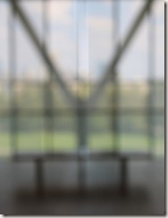 Like I said, the building itself is Art…here is a shot with clouds outside, clouds reflected off glass and clouds thru glass. If I had time I’d learn how to Photoshop out the incandescent lighting inside the gallery.